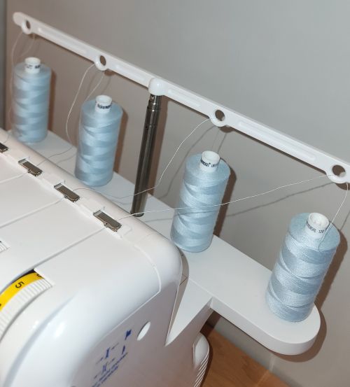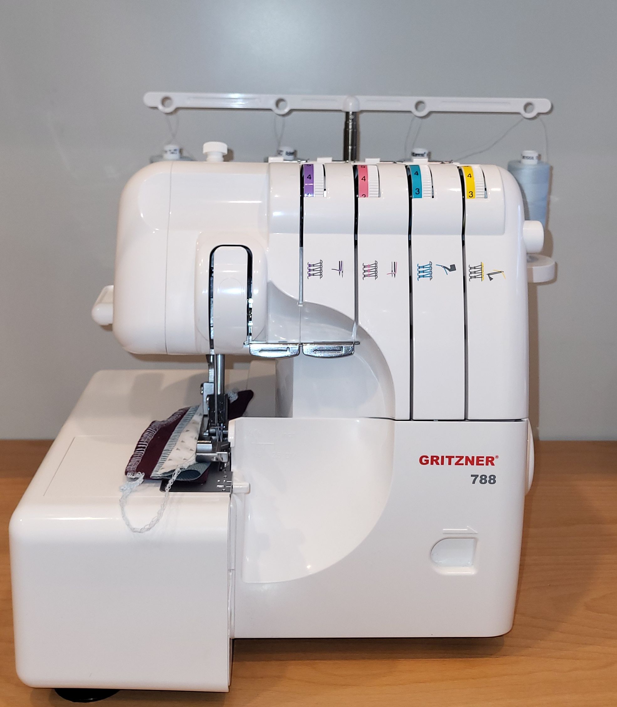 - Startfertig eingefädelt mit 4 Rollen Ackermann Nähgarn (je 1000m)